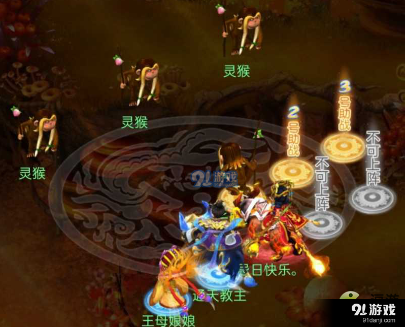 3、【灵猴】:雇佣王母和通天,人物使用技能顺序为原始技能顺序,宝宝不要带法连的。