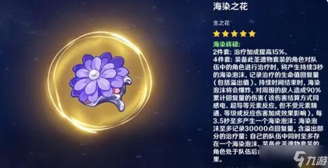 前台输出的心海更倾向于能够增加“治疗加成”“生命值”“水元素伤害加成”相关属性的圣遗物。