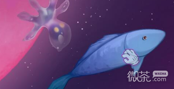 红色海草和三条不同颜色的鱼 全部与人物进行互动