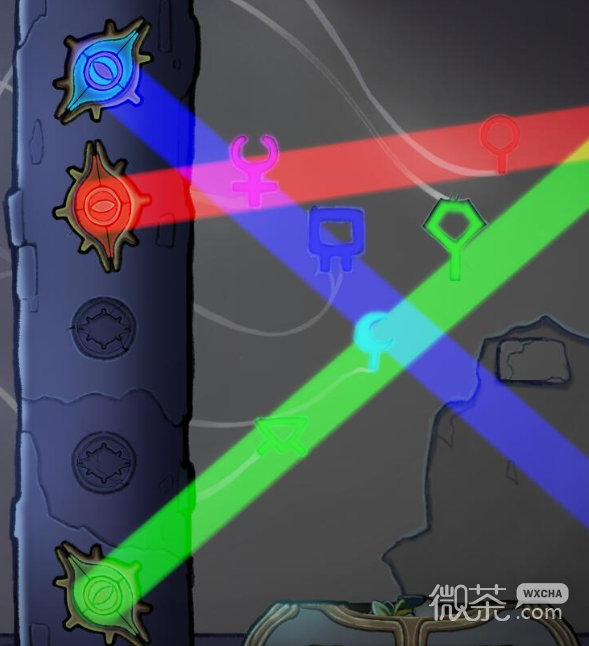 按照试管里从上到下的顺序,点击藤蔓上相应颜色的瓶子进行喷色