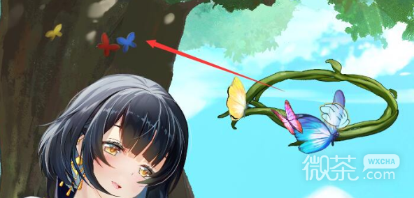 按树上提示用树枝圈按顺序附着蝴蝶(附着是是以鼠标的手为作用点,要手靠近蝴蝶)