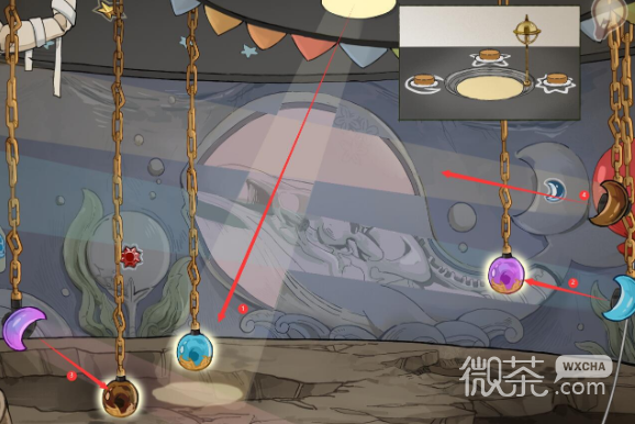 将灯光照射在右边气球上,将里面的道具放入指定位置