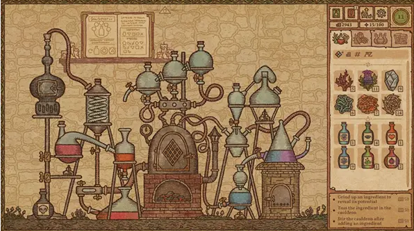 炼药是需要探图的,药炼成了还可以继续走,我用这种方法在二十几天的时候就把整张地图探出来了,其实可以更早,但是光看药瓶走路挺煎熬的,另外探完图发现其实药水都集中在中间一块,边上一大圈是没有的,玩家可以主要往中间这圈探索。