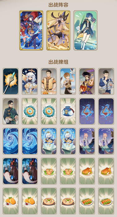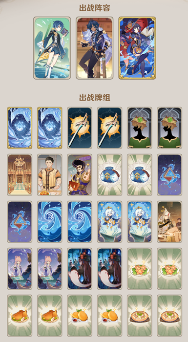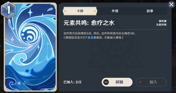 上面推荐的两个牌组,都用到了双水,双水共鸣的强度其实不低。治疗出战角色2点,治疗后台角色1点,一般可以回4点血。和双冰共鸣对比一下,相当于我抵消掉你增加的2点伤害,还能给后台角色回血,血赚。