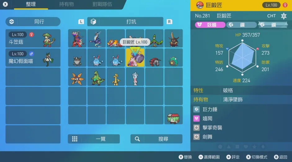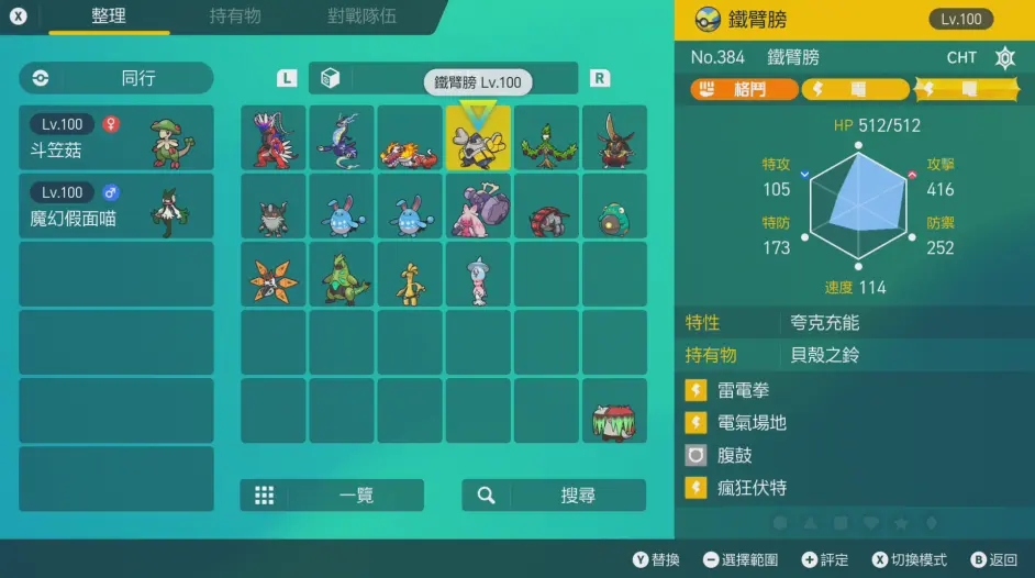 今天分享一些太晶团里个人觉得比较好用宝可梦(并非最优,耐久尚可且能强化/削弱BOSS+自身输出不低的精灵都能用),单刷或者组队6星都有比较好的发挥,努力值这块目前比较推荐252大法,加满单攻和hp保证生存,极个别例如铁臂膀这种血多防低252HP收益不理想的宝可梦有余力的朋友可以用计算器算算综合耐久来加,后面不会再在努力值这块多做赘述。PS:大部分对战道具可以在玻瓶市(水道馆)/桌台市(学院)/醸光市(电道馆)的信使鸟商店分别买到。