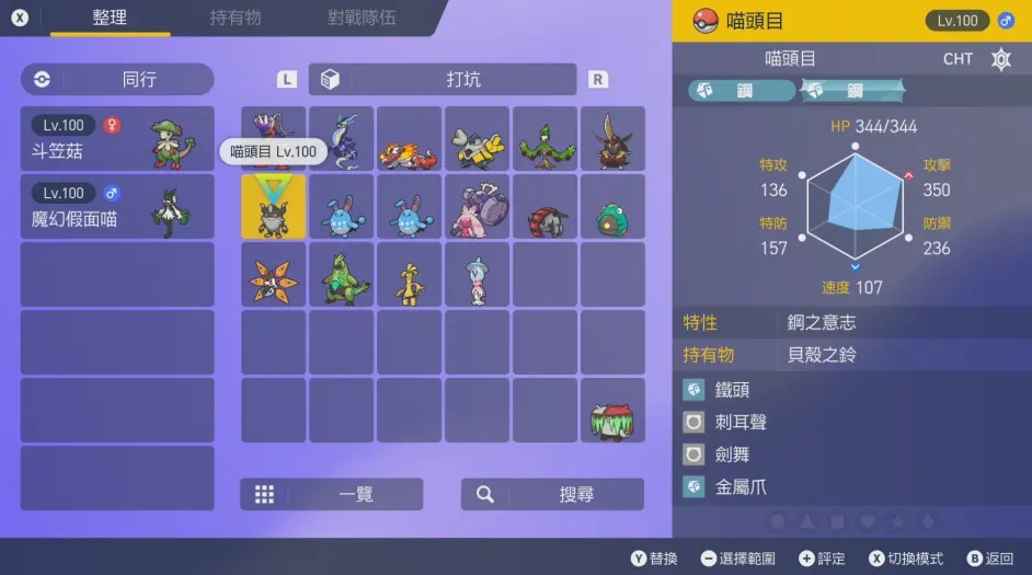 技能:铁头+刺耳声+剑舞+金属爪(这代好像没陀螺球学?)