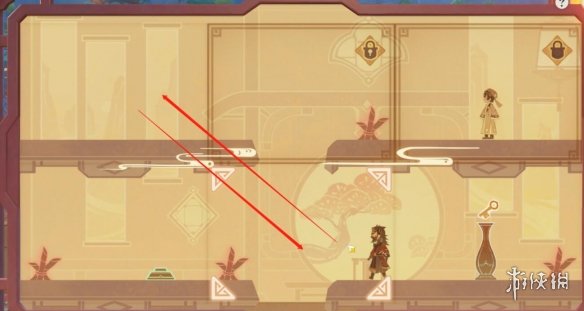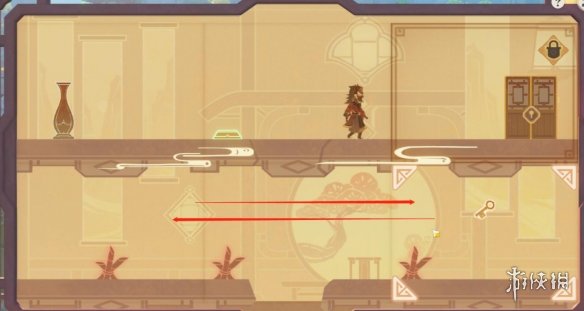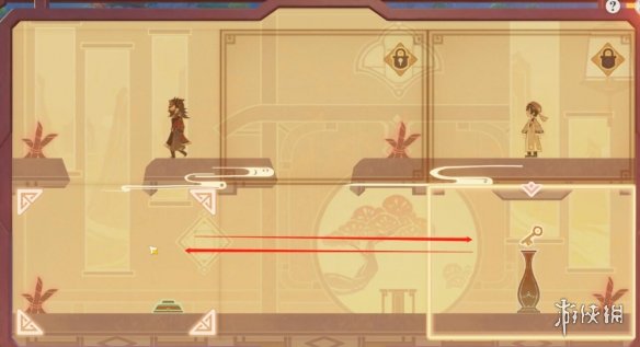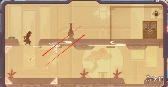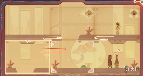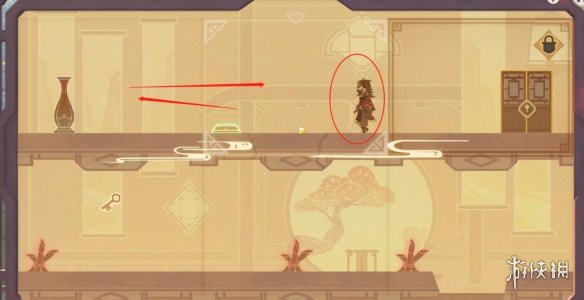 ③、然后将上方第二块和第三块对调,这样钥匙就拿到了。