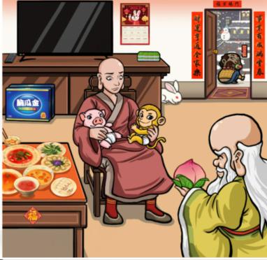 1、这一关是在西游记中找出12个年味,比如对联,满桌子的年夜饭
