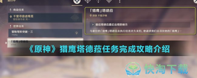 在原神游戏中新版本上线之后会有很多的任务需要玩家去完成,本次开放了新的沙漠地图,同时也有全新的世界任务能够去完成,在猎鹰系列任务中第一阶段是猎鹰塔德菈,那么想知道猎鹰塔德菈任务完成策略的就跟随小编一起来看看吧。