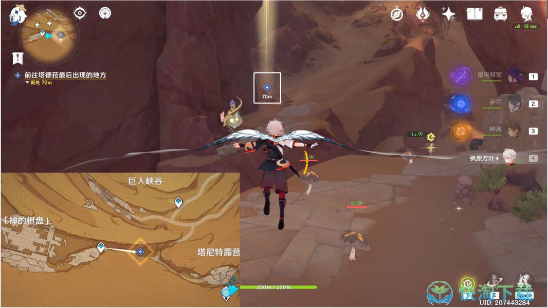 3、传送神的棋盘右边锚点,往地图的东方飞,前往塔德菈最后出现的地方。