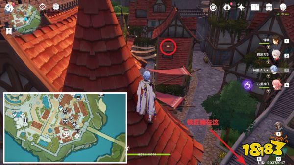 在铁匠铺西边的房屋上,爬上旁边的房子就能看见了