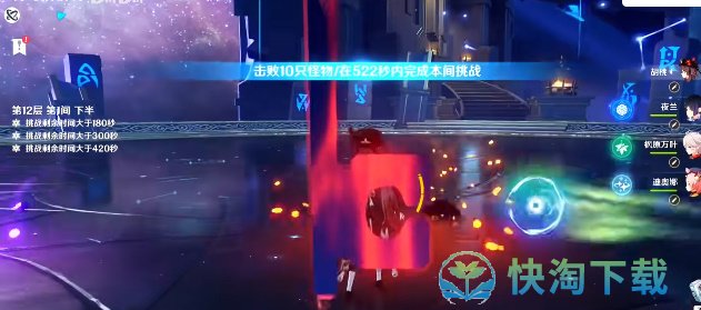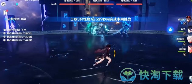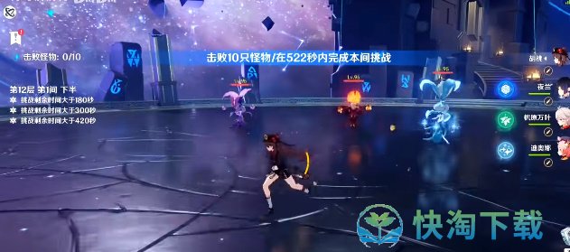 1、上半四只大怪考验练度输出能力,下半开挑战直接往后走,把三个骗骗花拉过来直接打就行了;