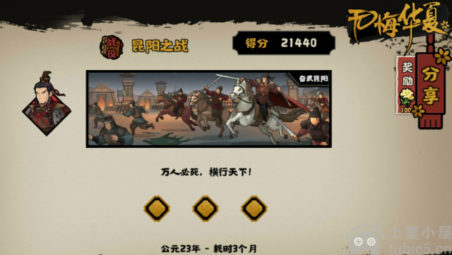 以上就是无悔华夏昆阳之战通关攻略的内容分享了,本攻略主打快速玩法,也给大家做个参考,我们下期见。