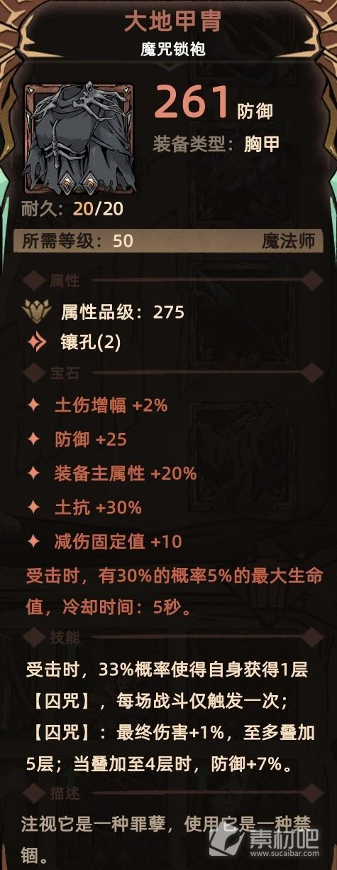 符文属性:装备主属性+20%、土抗+30%、减伤+10