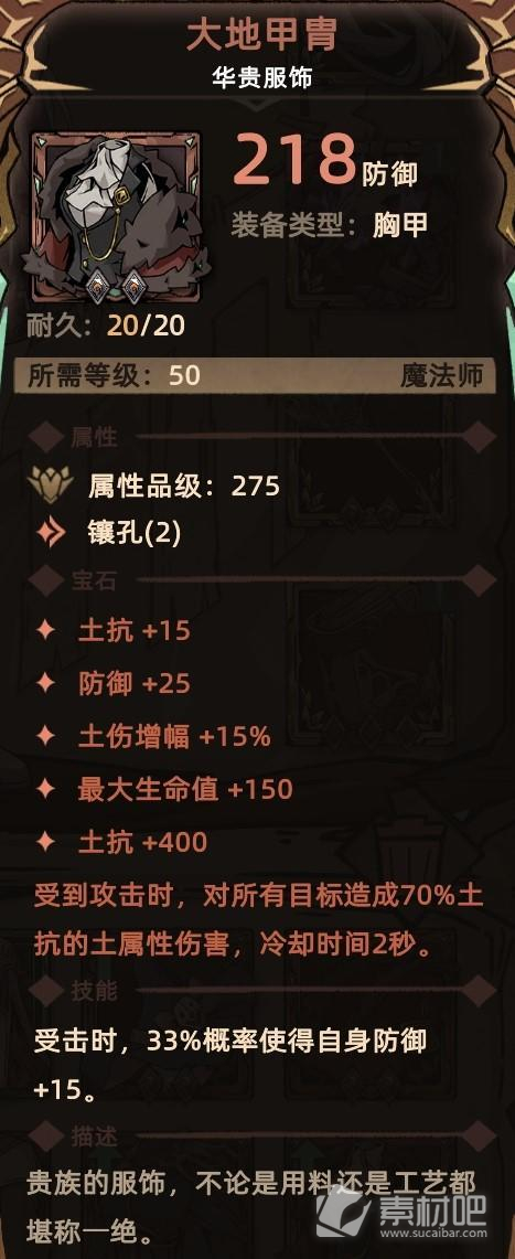 符文属性:土伤增幅+15%、生命+150、土抗+400