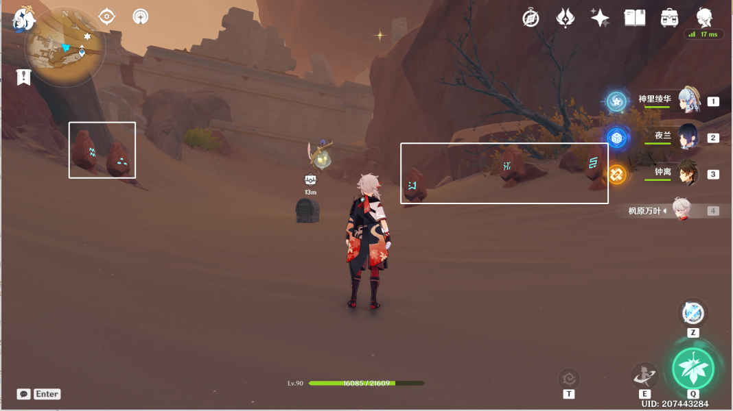 13、风化碑石13 。从12往地图的西南方向走,前往岩石堆枯木。按图中显示解密。