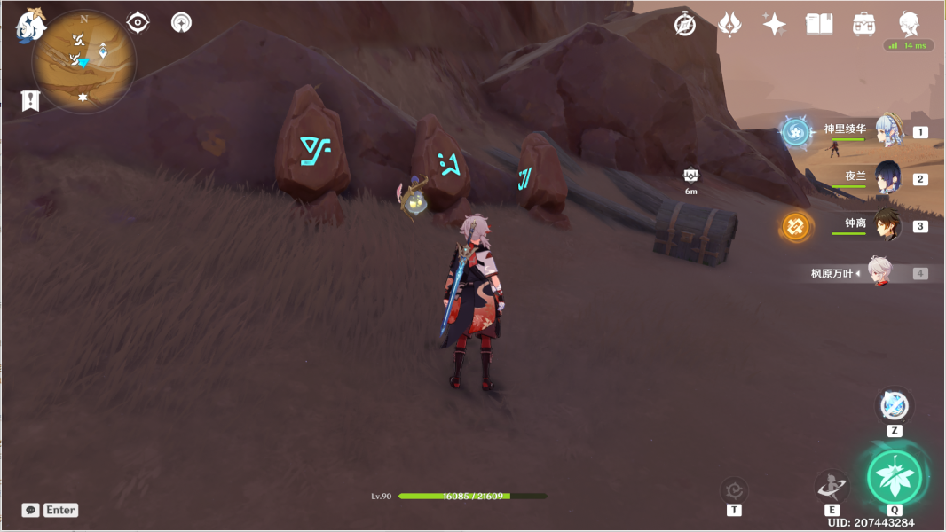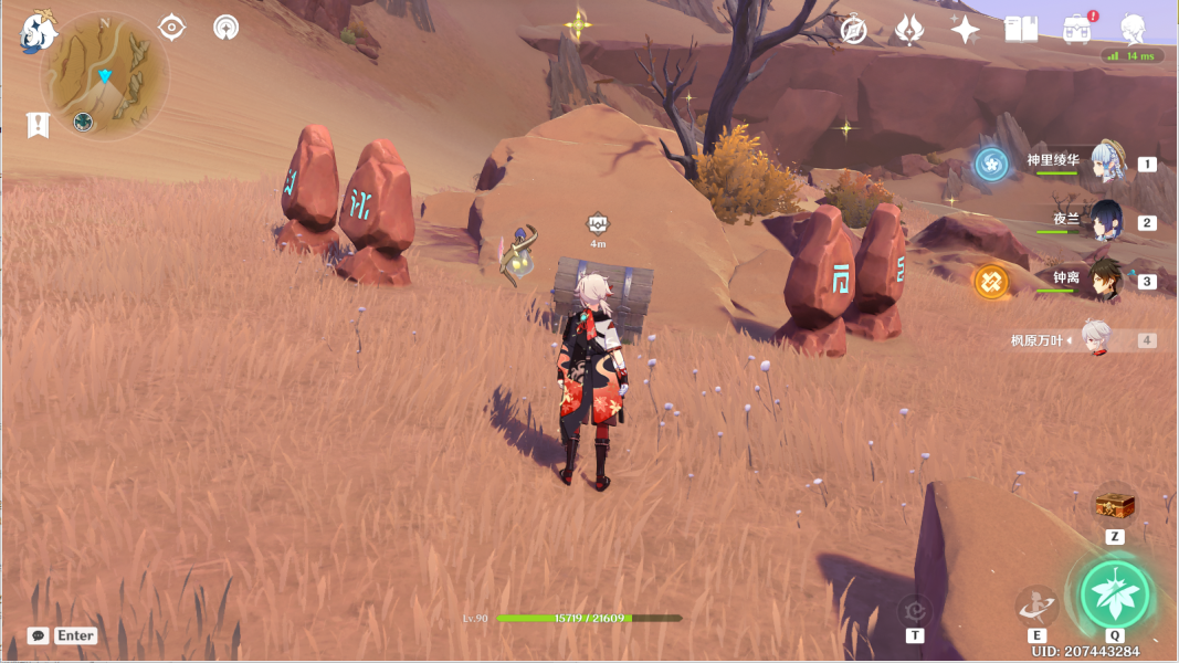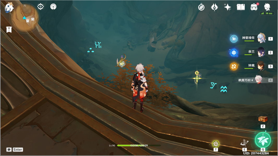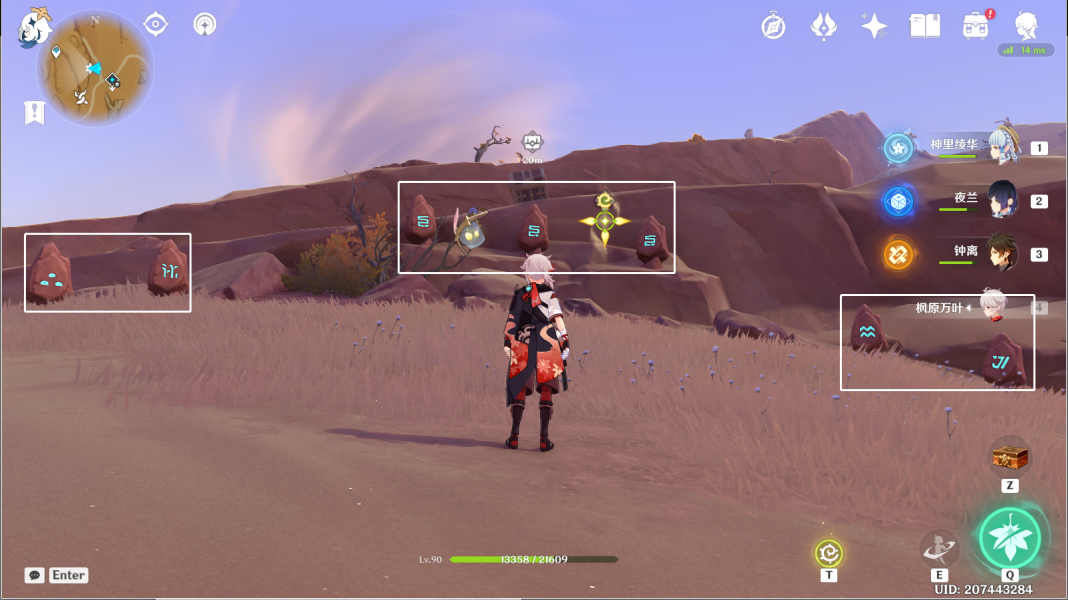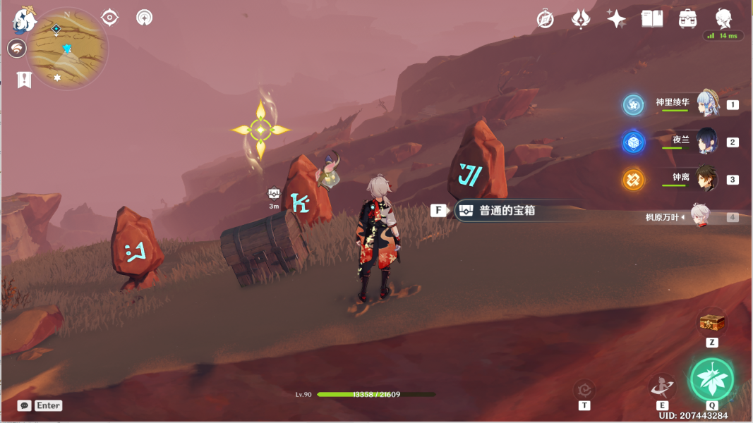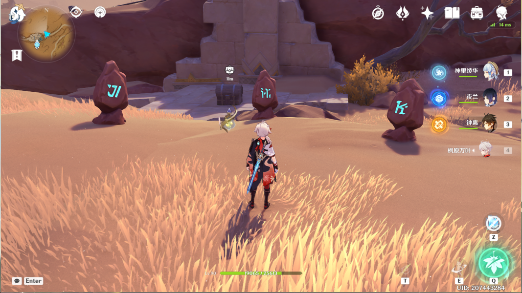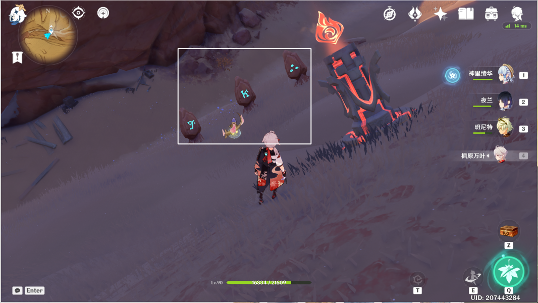 14、风化碑石14 。传送愚妄行宫西方向锚点,前往山崖顶部。按图中显示解密。