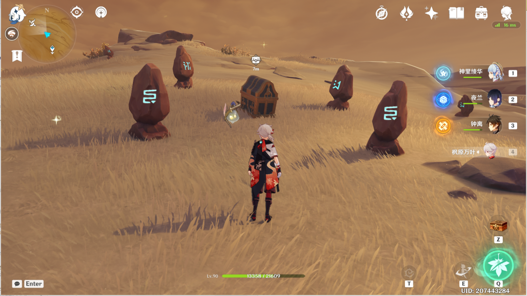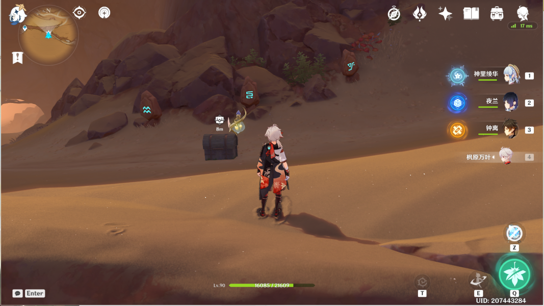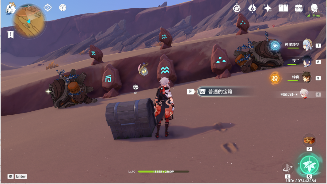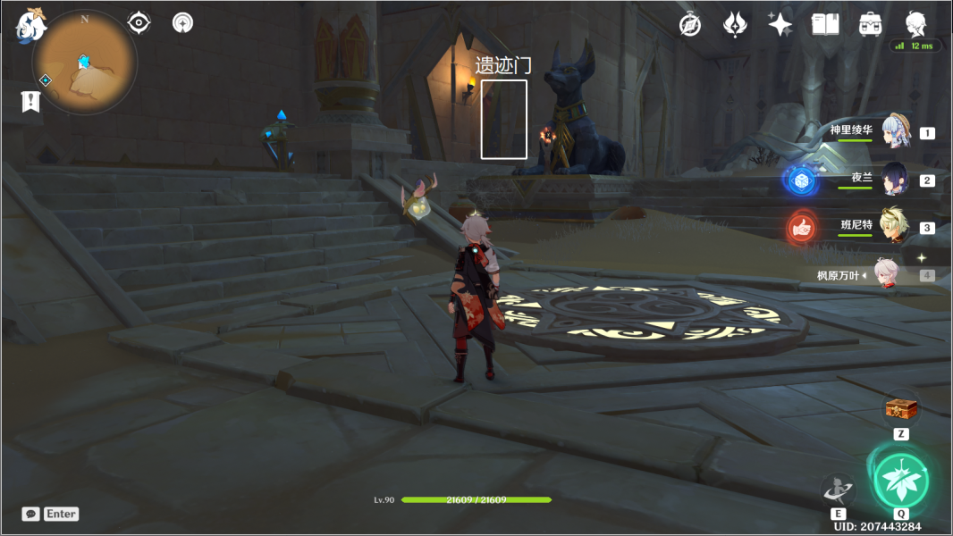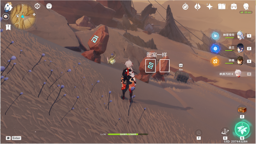 36、对应华丽宝箱④。传送神的棋盘图中锚点,利用四叶印,前往坑底遗迹门。>>千壑沙地华丽宝箱