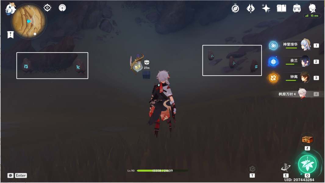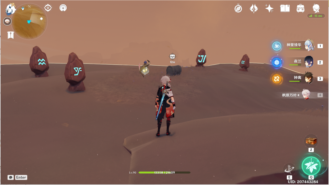 15、风化碑石15 。从14往地图的东北方向下飞,前往山坡上大气旋涡·大型。按图中显示解密。