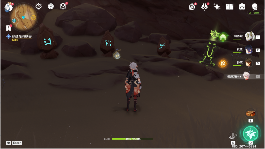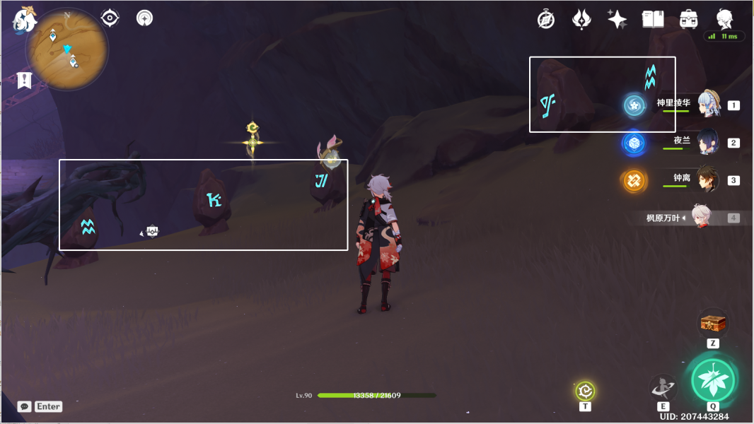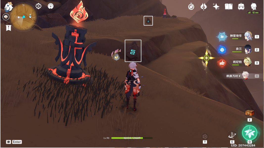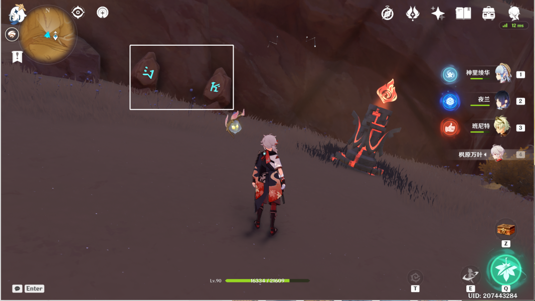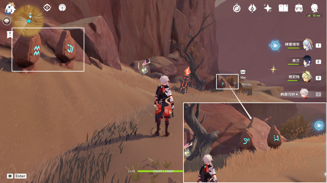 12、风化碑石12 。传送愚妄行宫东北方向锚点,前往山坡下崖底。按图中显示解密。