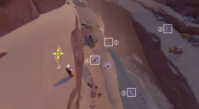 5、风化碑石5 。传送巨人峡谷东南方向锚点,前往峡谷山崖底部。按图中显示解密。