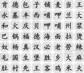 1.汉字找茬王餐饮品牌消除:庆丰包子铺,肯德基,汉堡王呷哺呷哺,德克士,西贝莜面村,必胜客,海底捞,兰州拉面,麦当劳,老乡鸡,大米先生,真功夫,杨国福麻辣烫,巴奴毛肚火锅,永和豆浆大王。