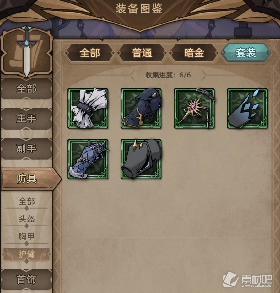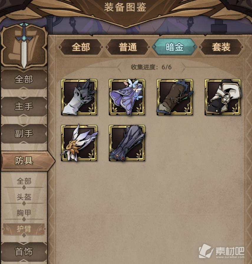 目前暗金护臂共6件。
