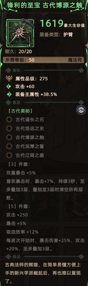 关键词:随机词条、双重暴击(套装效果)、暴击(套装效果)、buff移除(套装效果)、攻击(套装效果)、吸血(套装效果)、爆伤(套装效果)。