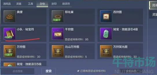 1、首先我们需要进入到游戏当中在左下角的位置点击合成,然后找到杂物:小队秘保符;