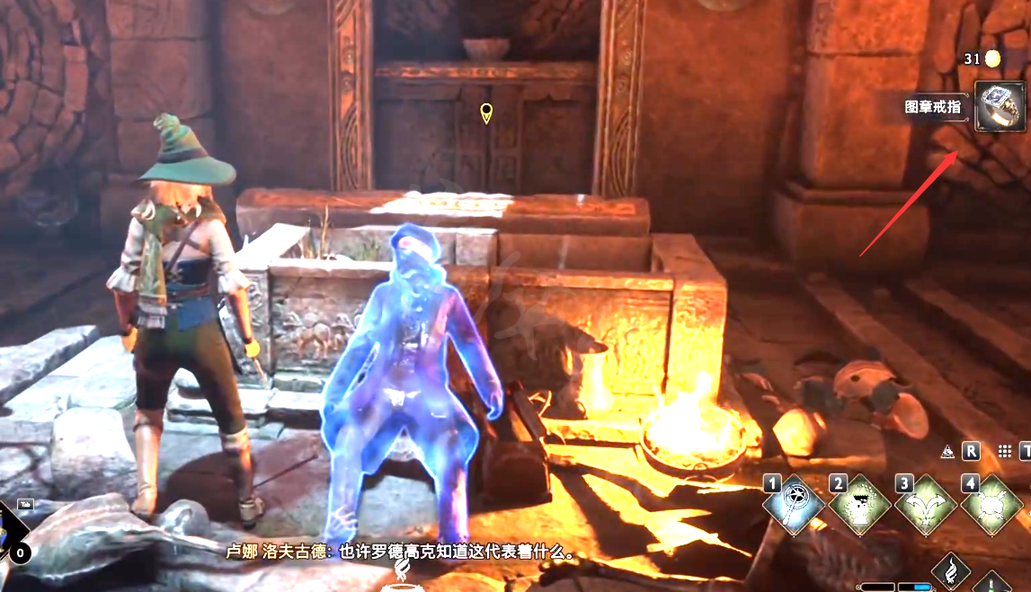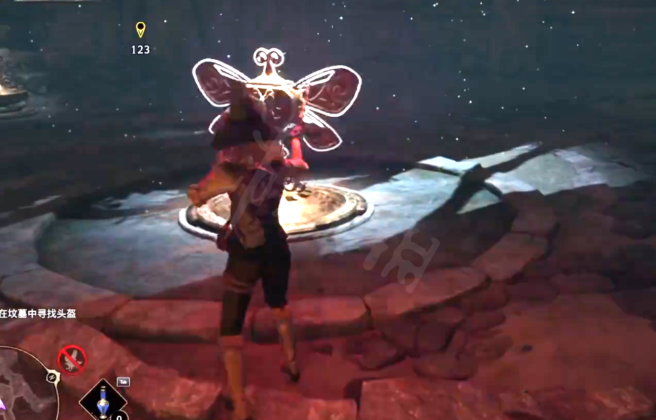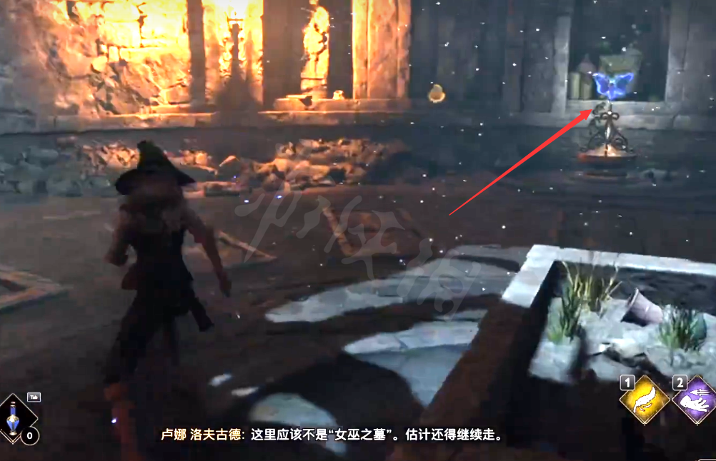 10、将3只蝴蝶全部归位开门,进门右边是拿宝箱,与任务无关,用飞来咒开机关,拿骨头放平台上激活道路,拿完宝箱返回。