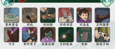 《疯狂梗传》的最新关卡:怀旧岁月三这一关不是很难,唯一比较难找的几个点有右下角的网线,女孩头上的卷发棒,以及左下角的洞洞鞋,其它都比较简单。