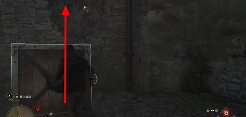 把箱子放在墙边,利用箱子就可以爬上城堡上面了。