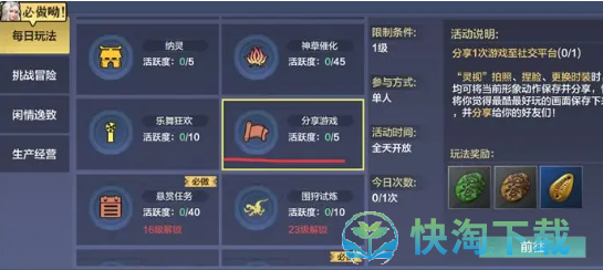 2、在每日玩法中找到 【分享游戏】 点击前往按钮;