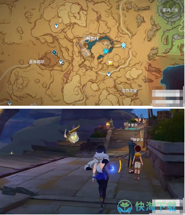 1、得先到达阿如村,在下图位置,朝这个方向出发一直往前走。