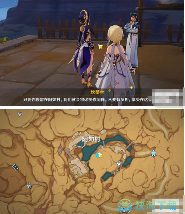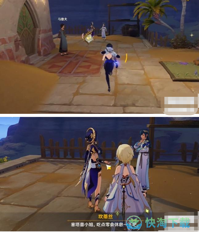 3、进入剧情之后玩家需要仔细观察她们说话的内容去分析自己所需,因为这是个彩蛋听不懂就需要自己去猜测,如果玩家找不到位置,那么可以直接根据这个来找到坎蒂丝和塞塔蕾。