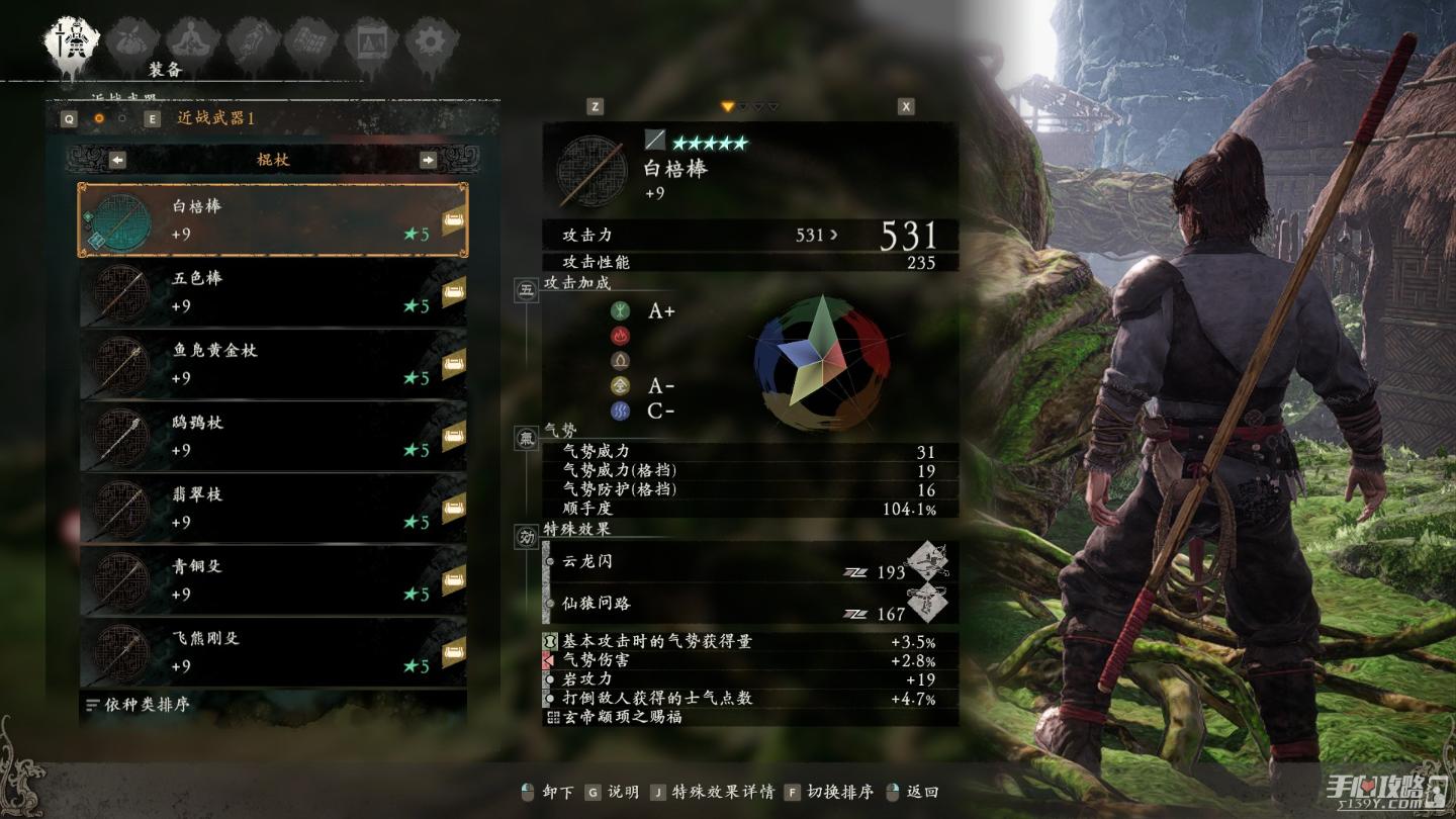 棍杖,一共七把,数量目前第二多的武器,木金水加成