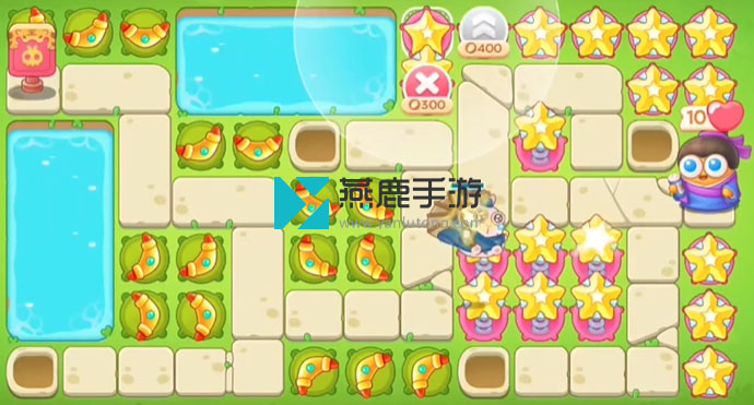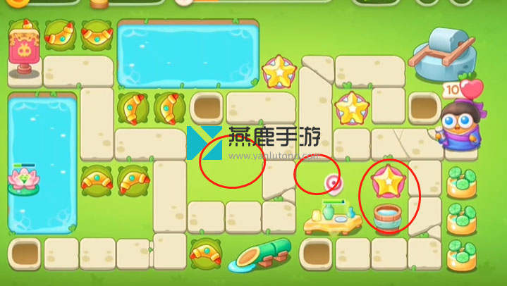 4、开始清理周围障碍物,从水桶开始到花篮,接着建立星星继续清理。