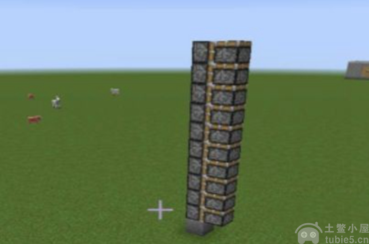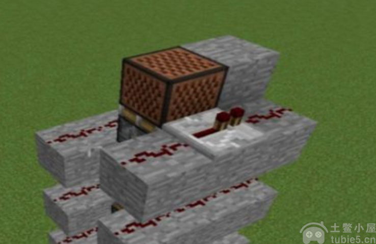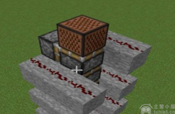 5、铺到顶层之后我们在最上方防止一个无法推动的盒子。(方块音符盒)