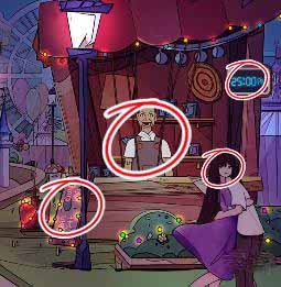 2.首先是从商店的老板就是提线木偶、门口广告牌还有拥抱的人是两人一头、时间确是25点。
