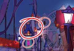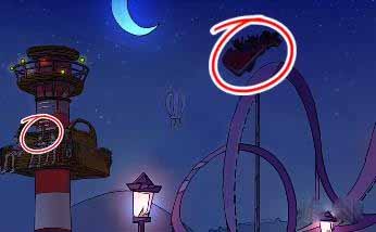 3.之后点击城堡招牌找到鬼城招牌和城堡失火还有后面摩天轮上有个玩偶熊。