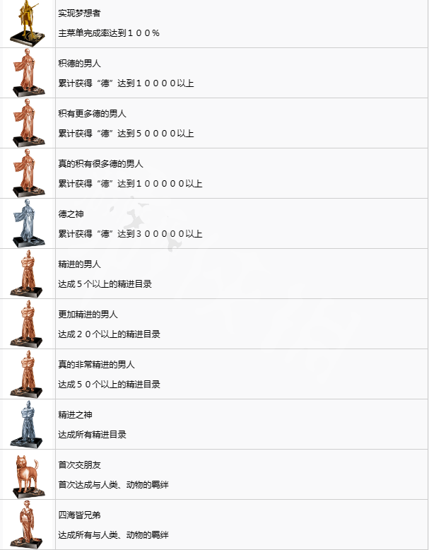 如龙维新极是一款动作游戏,里面有很多的任务,伴随着也有很多成就,很多玩家想知道如龙维新极游戏中全奖杯的解锁条件是什么,这次带来的就是如龙维新极全奖杯一览。