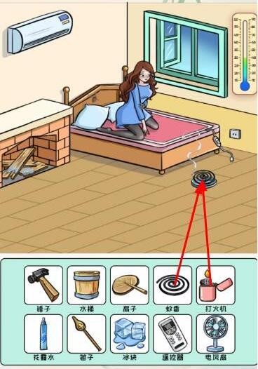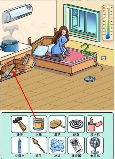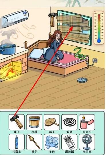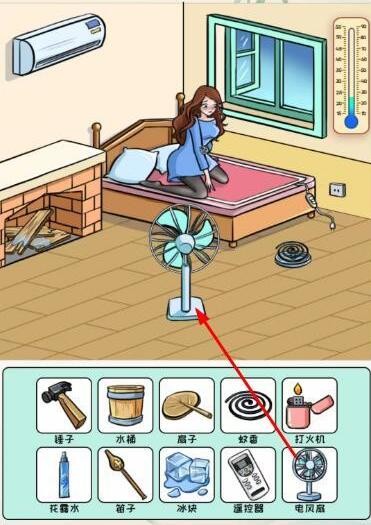 5、最后可以发现体温降的差不多了,最后再使用电风扇降温就通关了 。