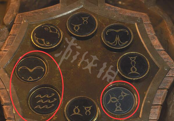 根据三个提示图案,按下这三个对应的按钮,门就开了,拿到亵渎者头雕。