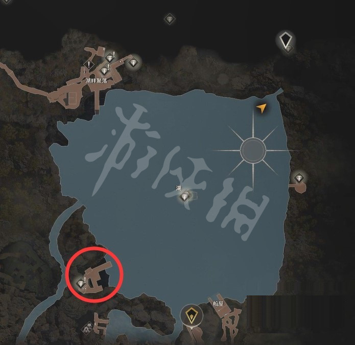 1、村庄靶场商人旁,商人对面的箱子里拿到六边形拼图A。