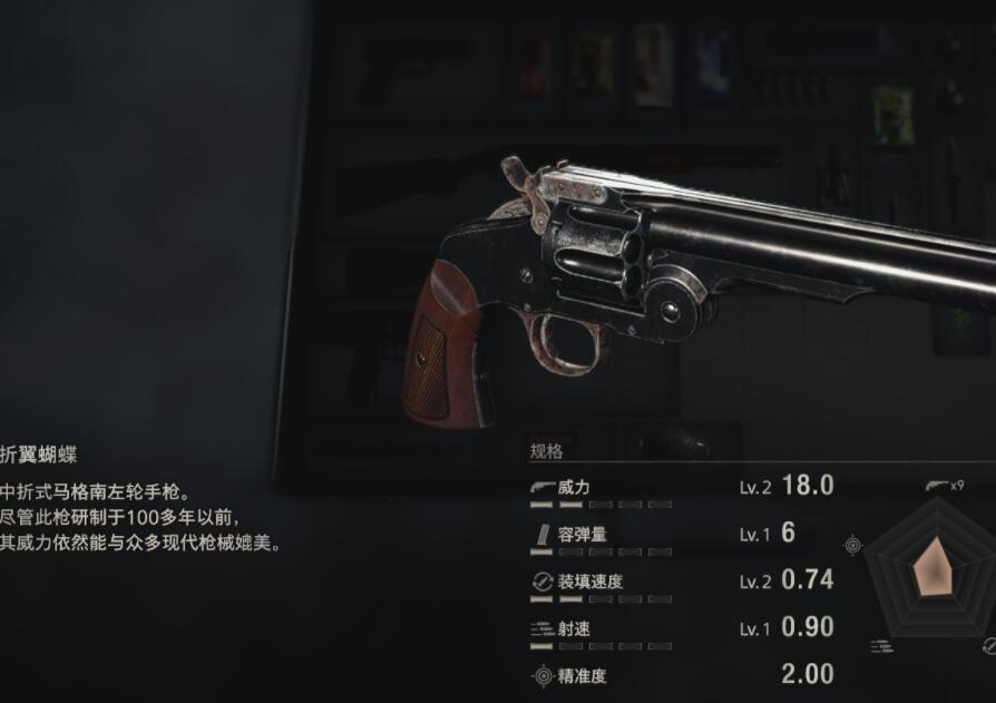 极具穿透力的9毫米口径手枪。短枪管及低后坐力使其易于上手,是副武器的理想选择。