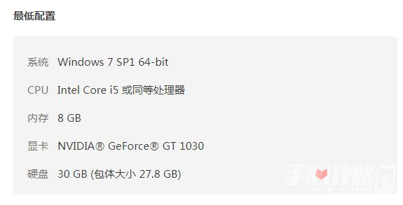 硬盘:30 GB (包体大小 27.8 GB)