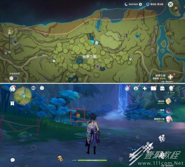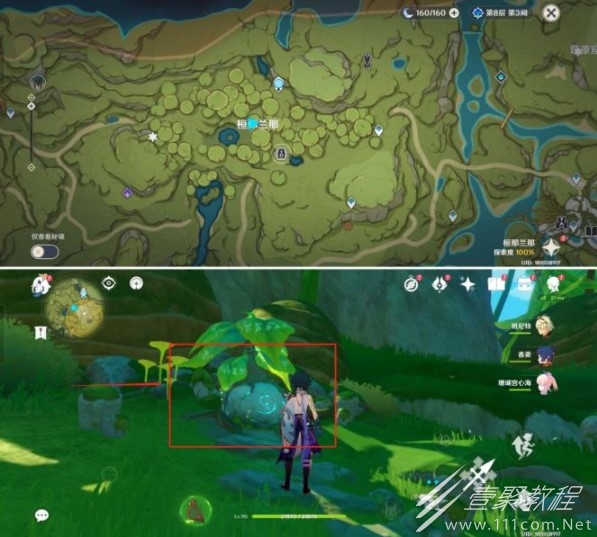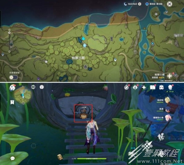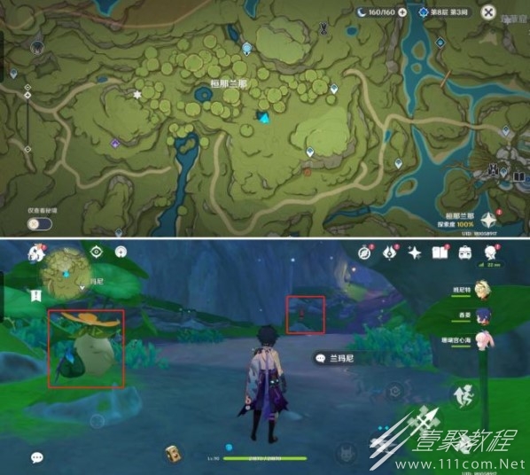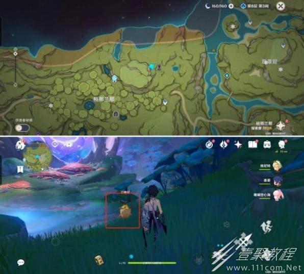 4.拍摄点三,来到梦之树左侧,在梦之树附近有橙色兰那罗,按“Z”进行拍摄。