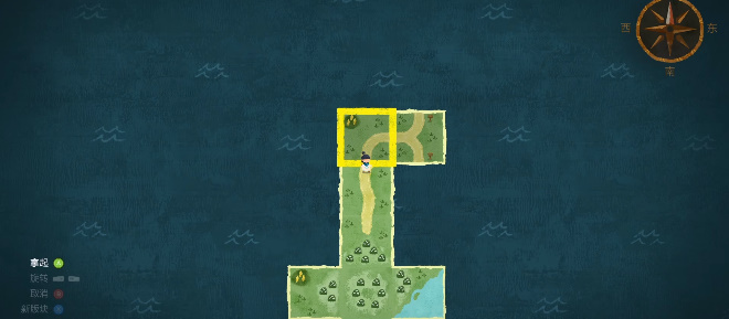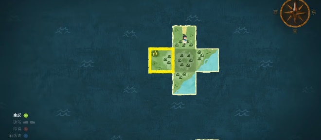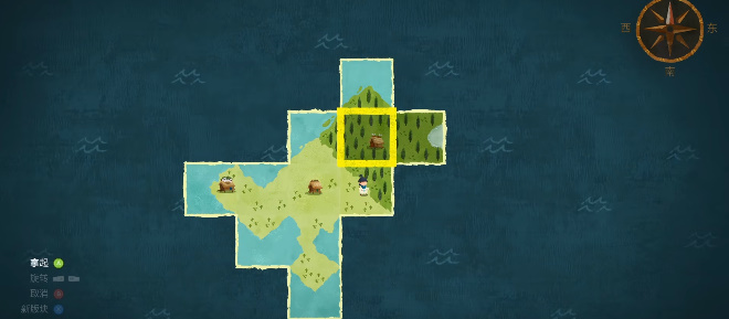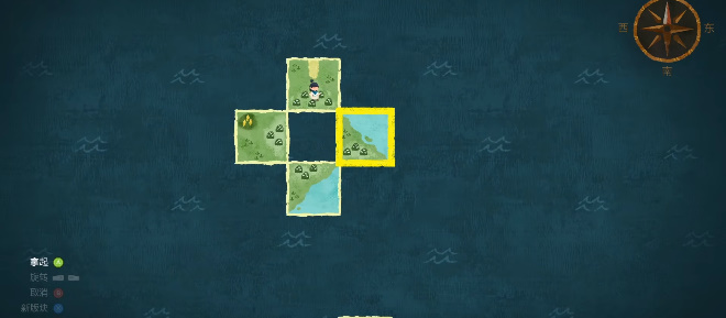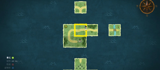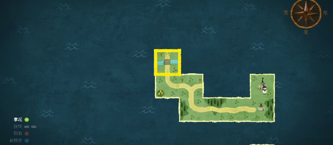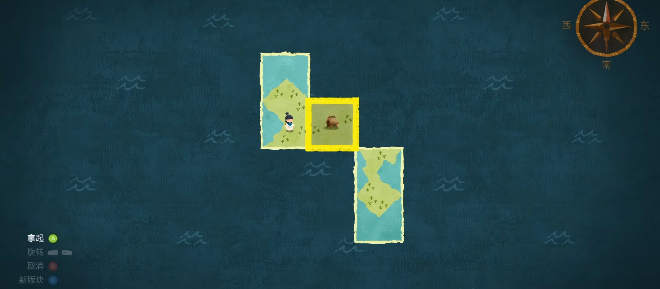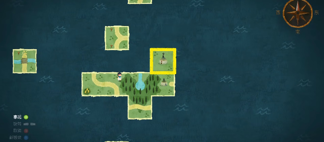 4、他家在在海岸旁,位置在草原上那间房子的西边,右上角的指南针会指示东南西北,玩家需要带阿伯一起回家,就需要把拼图一起移动过去,移动之后就会看到一间小房子,在房子下面还会有一个碎片;