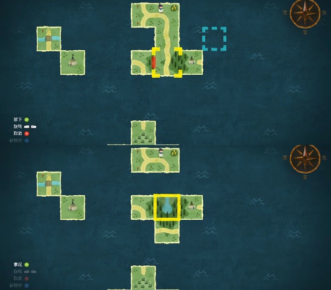 1、当玩家在草坪中醒来的时候在右上角可以拿到地图,点击Y就可以开始探索了,可以自由改变世界的样貌,移动地图上面的人和一个版块,也可以啊旋转他们,地形相同可以拼接在一起;