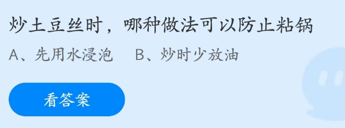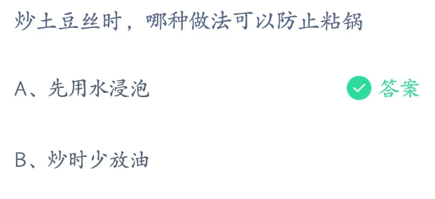 蚂蚁庄园4月18日:炒土豆丝时哪种做法可以防止粘锅
